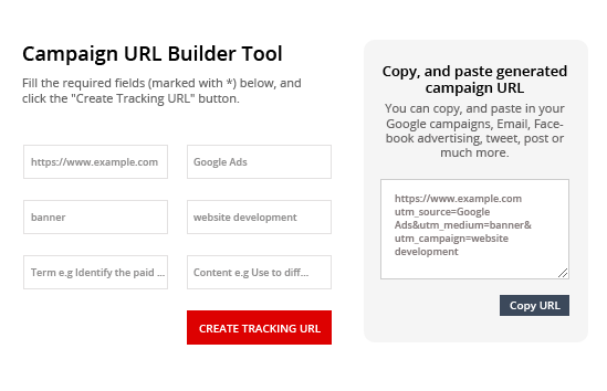 Fill in the required fields (marked with *) below, and click the "Create Tracking URL" button.